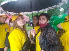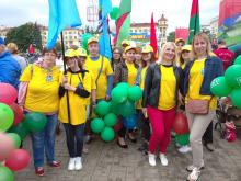Сотрудники, обучающиеся и даже выпускники филиала утром 3 июля 2020 года, на проспект Независимости, чтобы принять участие в патриотическое шествии «Беларусь помнит!».