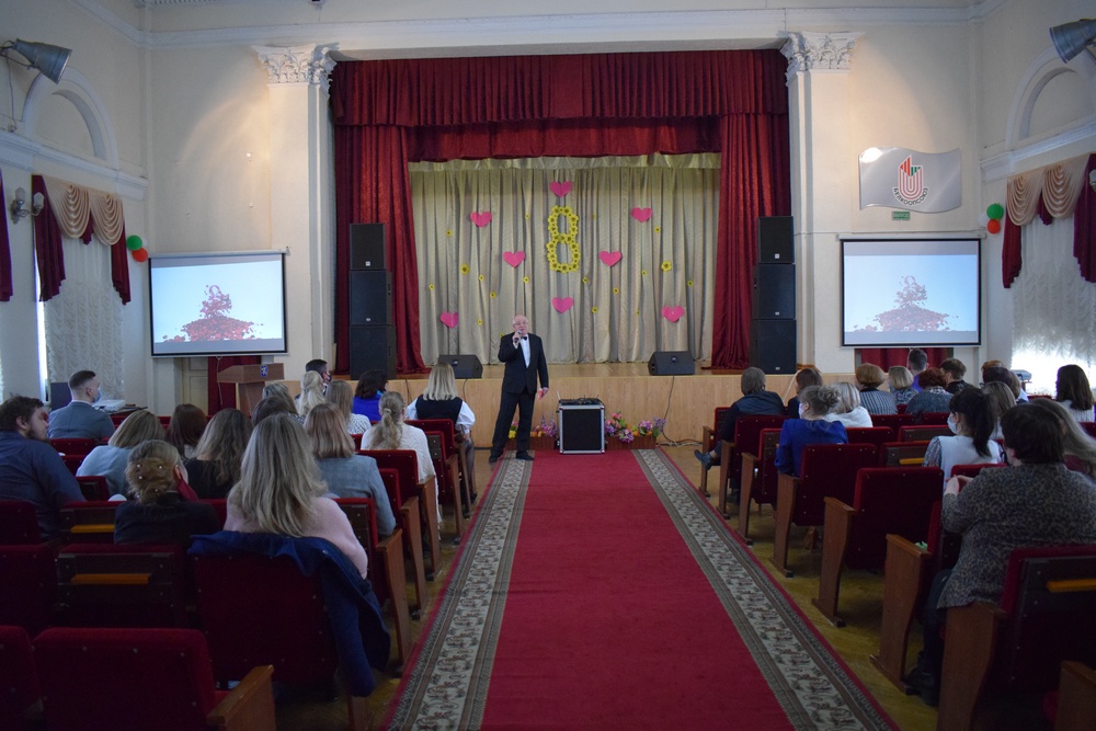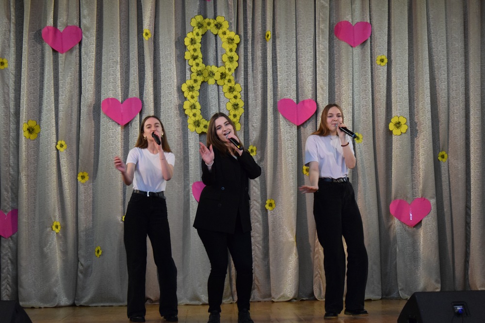 В 12 часов стартовал праздничный концерт с сюрпризами и неожиданными поздравлениями от мужской части Филиала. Харизматичные ведущие с лёгкостью приглашали участников концерта на сцену. К слову говоря, на празднике выступали как приглашённые артисты, так и обучающиеся нашего учреждения образования.