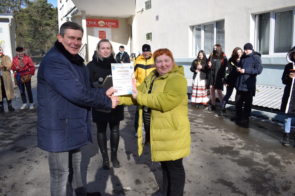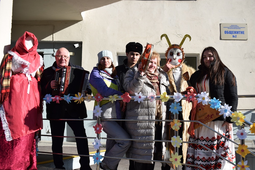 Праздничное настроение царило сегодня на всей территории Филиала с самого утра. А все потому что на улице согревало солнце, а в уютном дворе, окруженном строениями учреждения, общежитиями, развернулось масленичное гулянье.