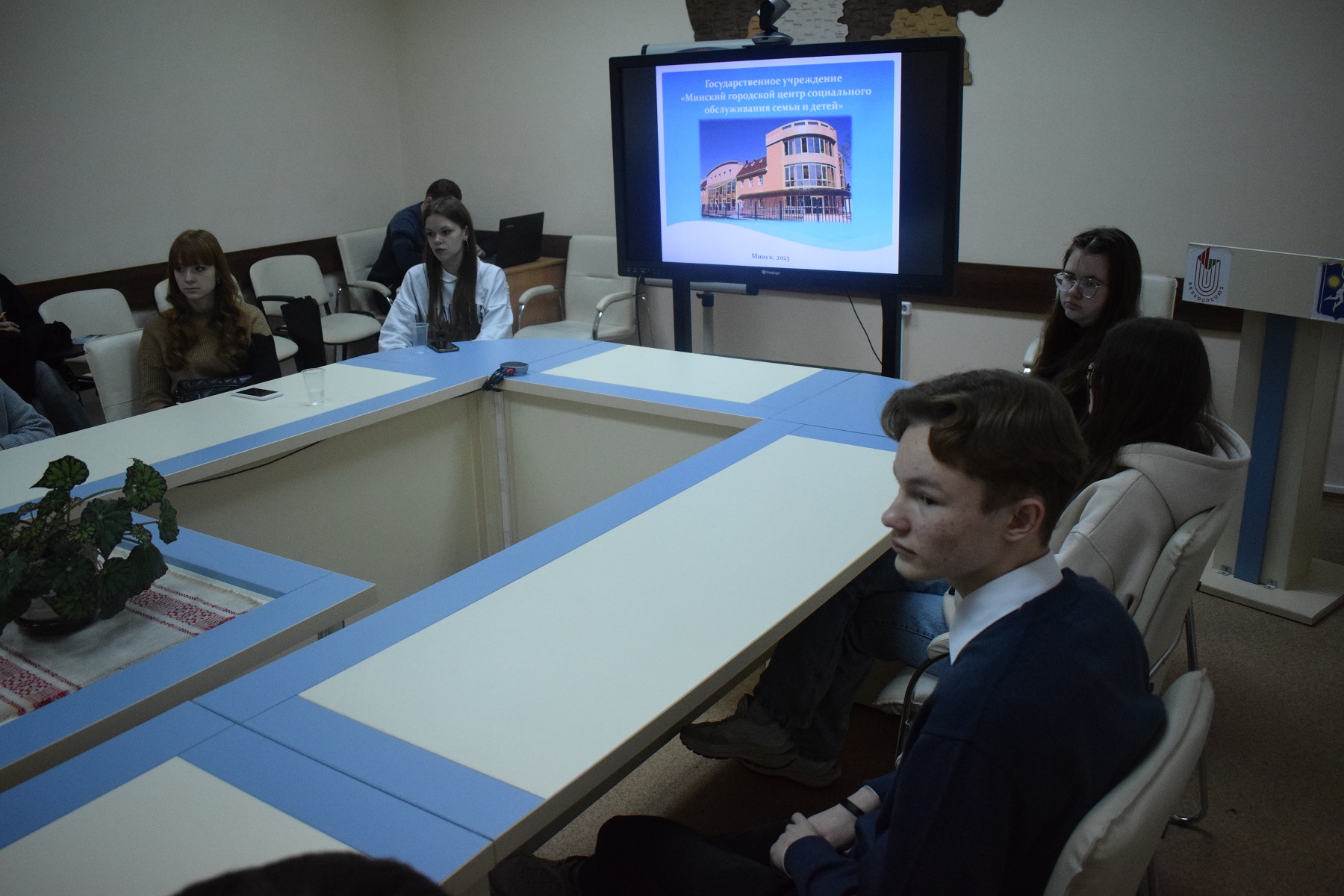 16.02.2023 в Минском филиале прошла диалоговая площадка по теме «Социальная защита и современное состояние семьи. Факторы, влияющие на семейное неблагополучие». О проблемах молодой семьи и путях их решения с учащимися-выпускниками поговорили педагог-психолог филиала Шевцова Юлия Анатольевна и заведующий отделением психологической помощи семье и детям ГУ «Минский городской центр социального обслуживания семьи и детей» Почепко Наталья Григорьевна. В ходе диалога Наталья Григорьевна также ознакомила учащихся с работой центра, с проектами и программами по оказанию поддержки и услуг семьям и детям.