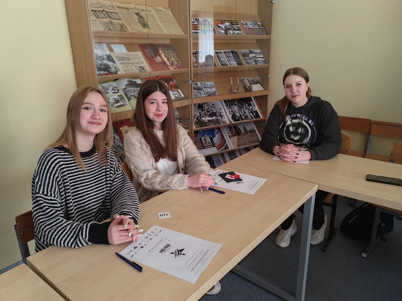 27.04.2022 на базе Филиала Российского государственного социального университета прошёл "Диктант Победы" о событиях 1941-1945 годов. Поучаствовать в международной просветительско-патриотической акции решили активисты БРСМ филиала. Им пришлось отвечать на вопросы, касающиеся Нюрнбергского процесса, победы Красной армии в Сталинградской и Курской битвах, освобождения Донбасса от немецко-фашистской оккупации и прорыва блокады Ленинграда.