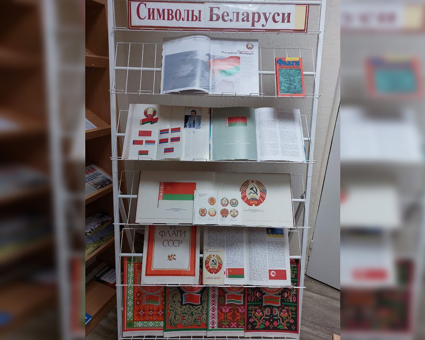 Книжная выставка ко Дню государственного герба и флага Республики Беларусь "Символы Беларуси" была организована в библиотеке с 8 по 13 мая