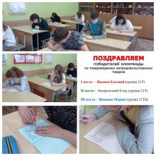 В соответствии с программой были проведены олимпиады по учебным предметам «Товароведение продовольственных товаров», «Товароведение непродовольственных товаров», «Организация и технология торговли», игра-викторина «В мире товароведения», конференция учащихся по теме «Безопасность товара – залог здоровья нации!», выпущены стенгазеты «Вестник товароведа» и «В мире товароведения».