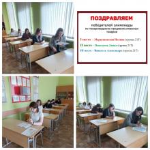 1 место – Шмелёва Варвара (группа 21ТБ) с докладом на тему «Безопасность пищевой продукции. Молоко» и Китарова Анастасия и Котова Злата (группа 21М) с докладом на тему «Безопасность упаковочных материалов»;