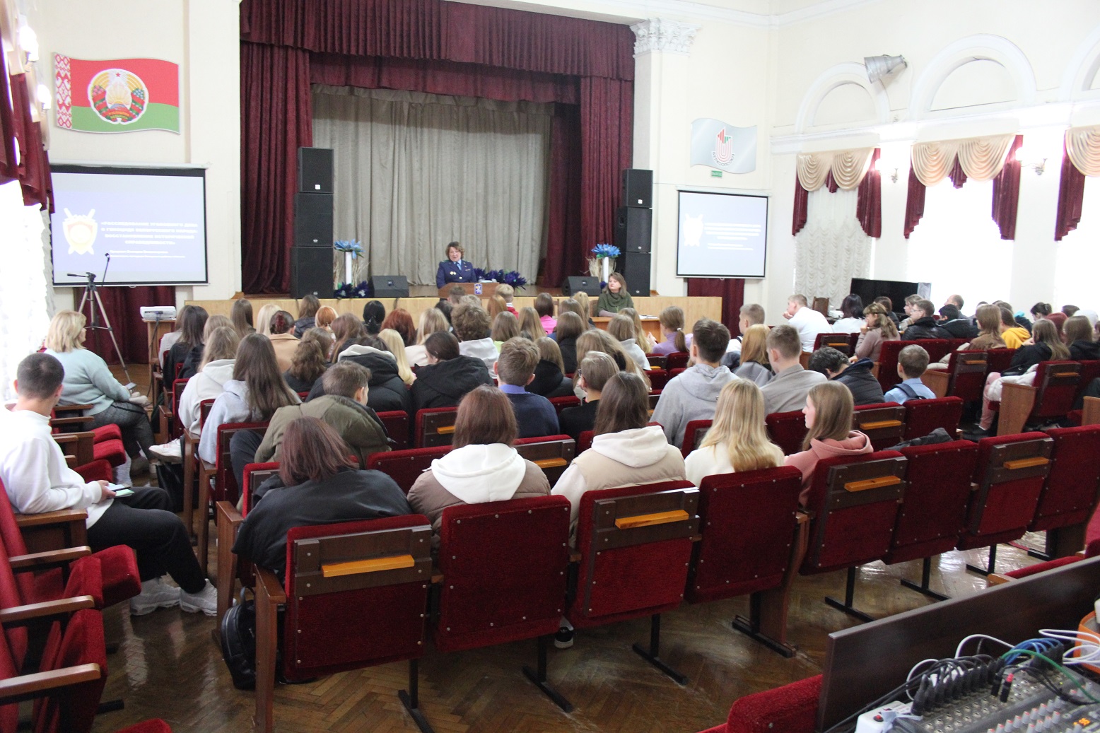 Цель мероприятия – проинформировать молодёжь о ходе расследования уголовного дела о фактах геноцида белорусского народа. Виктория Владимировна рассказала, что в настоящее время активно ведётся работа с архивными документами, которые помогают найти очевидцев событий, с помощью которых устанавливаются обстоятельства карательных операций и места массового захоронения погибших. Правозащитник зачитала воспоминания свидетелей геноцида и выдержки из приказов, которые являлись своего рода инструкцией по уничтожению населённых пунктов с мирными жителями.