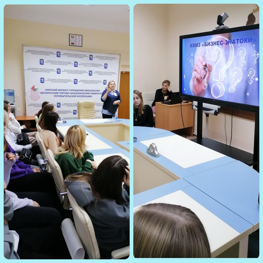 26 октября 2023 года преподаватель Красовская О.А. провела с учащимися групп 21МБ и 22МБ лекцию «Тренды и инновации в области цифровой трансформации бизнеса». А затем совместно с преподавателем Ковалевской Н.Н. провели квиз «Бизнес-знатоки», где в лёгкой игровой форме учащиеся узнали дополнительные интересные факты о предпринимательстве, экономике и коммерции и получили сладкие призы за активность.