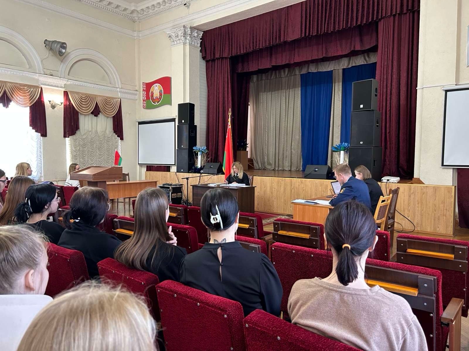 02 ноября 2023 г. в Минском филиале УО "Белорусский торгово-экономический университет потребительской кооперации" состоялось два выездных судебных заседаний Суда Заводского района города Минска. Под председательством судьи Капцевич Е.В. рассматривалось два уголовных дела предусмотренных ч. 1 ст. 206 и ч.1 ст. 342 Уголовного кодекса Республики Беларусь. Учащиеся проявили огромный интерес к рассматриваемым уголовным делам. Первое уголовное дело рассматривалось в отношении гражданки за организацию и подготовку действий, грубо нарушающих общественный порядок либо активное участие в них. Второе уголовное дело рассматривалось за открытое похищение имущества (Грабёж).
