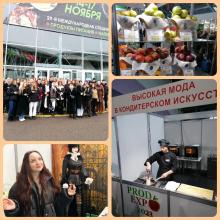 15 ноября 2023 года учащиеся групп 21М и 31МБ вместе с преподавателями Красовской О.А. и Ковалевской Н.Н., куратором группы 31МБ Липской Т.А. под руководством заместителя директора по учебно-производственной работе Семёновой И.Е. провели выездное практикоориентированное учебное занятие на базе 29-й Международной специализированной оптовой выставке-ярмарке «ПродЭкспо-2023».