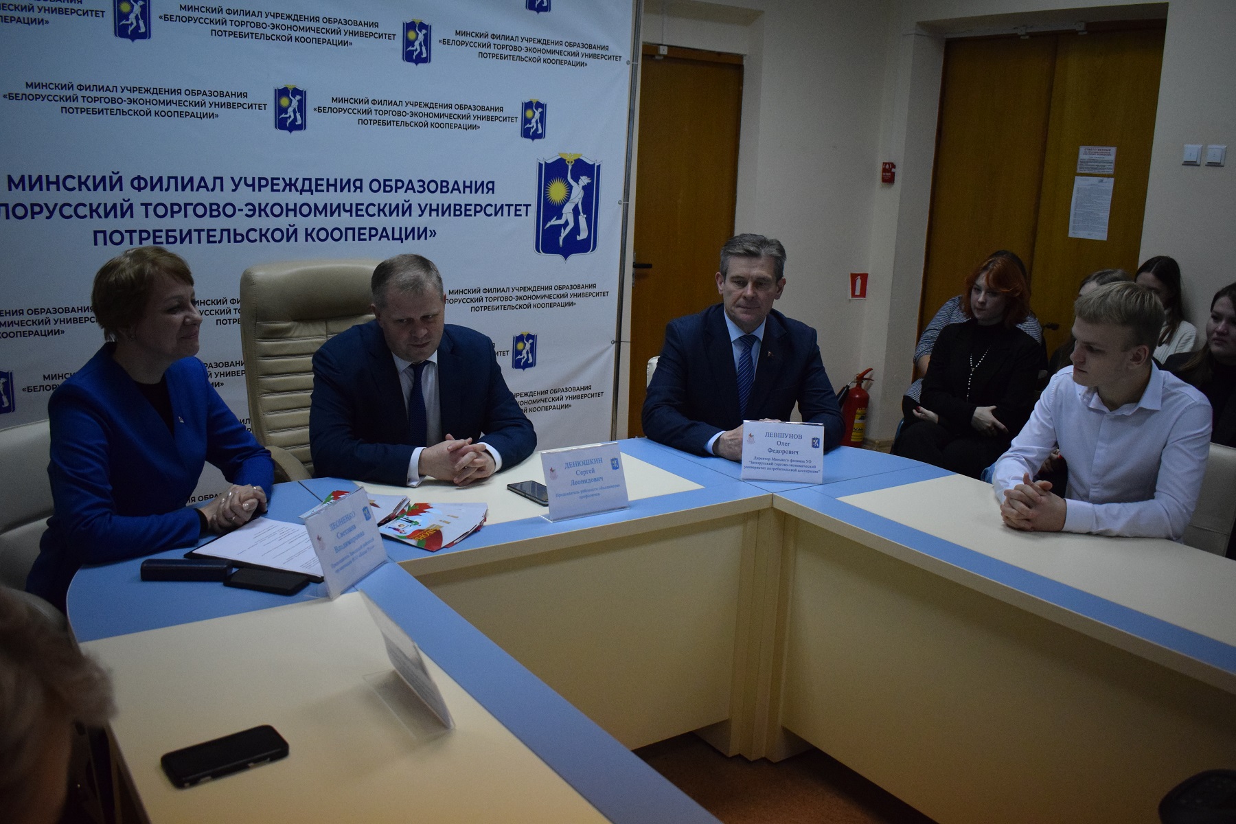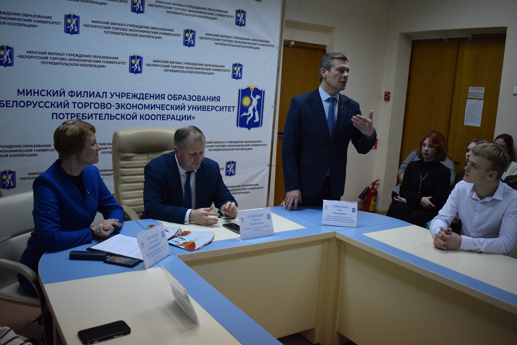 26 декабря 2023 в Минском филиале УО «Белорусский торгово-экономический университет потребительской кооперации» состоялся открытый диалог представителей студенчества, преподавателей предметной (цикловой) комиссии правоведения и общественных деятелей по вопросам изменений в Избирательном кодексе Республики Беларусь и электоральной кампании 25 февраля 2024 года. Предметом обсуждения стали Законы «Об изменении Избирательного кодекса Республики Беларусь» и «О Всебелорусском народном собрании».