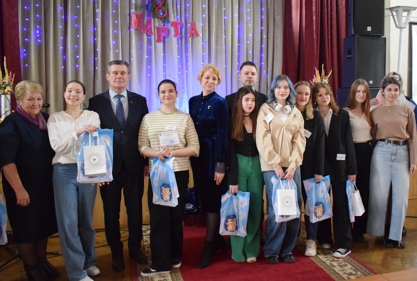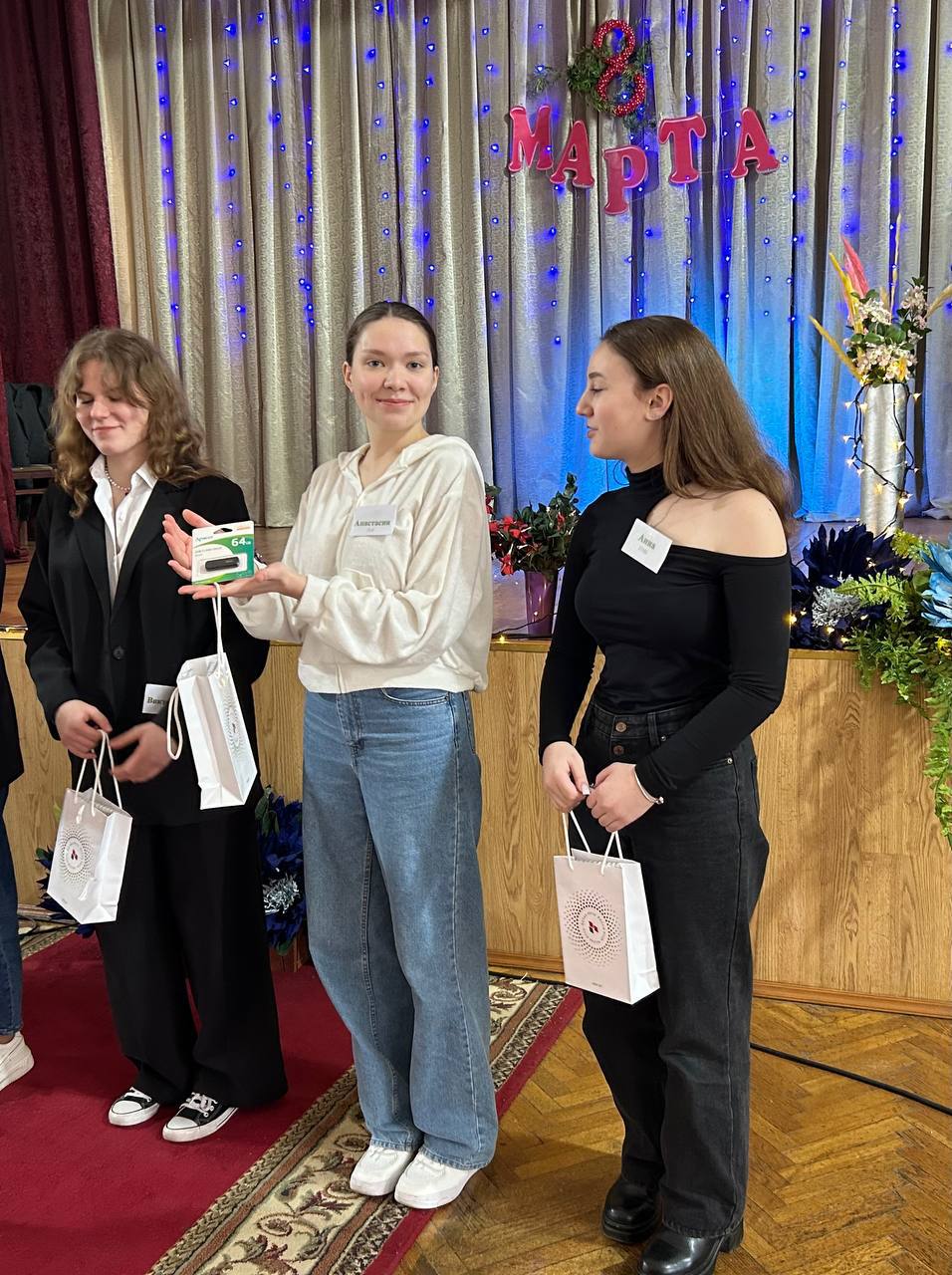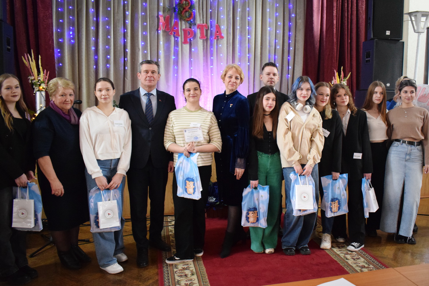 Директор филиала Олег Фёдорович Левшунов поздравил всех присутствующих дам с наступающим праздником, поблагодарил участниц за искрометность и неповторимость и вручил подарки от администрации и профкома обучающихся филиала.