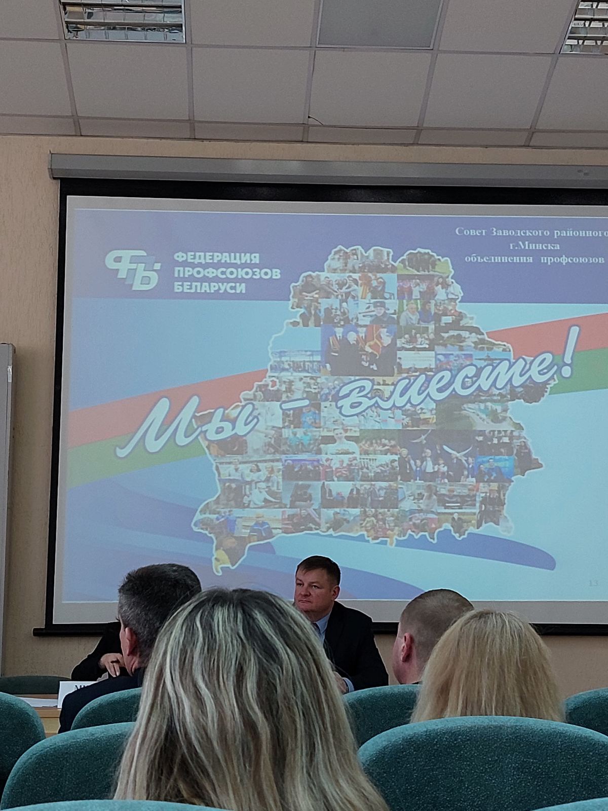 25.03.24 директор филиала Левшунов Олег Федорович и председатель первичной профсоюзной организации сотрудников Кузнецова Елена Анатольевна приняли участие в заседании Совета Заводского районного г. Минска объединения профсоюзов.