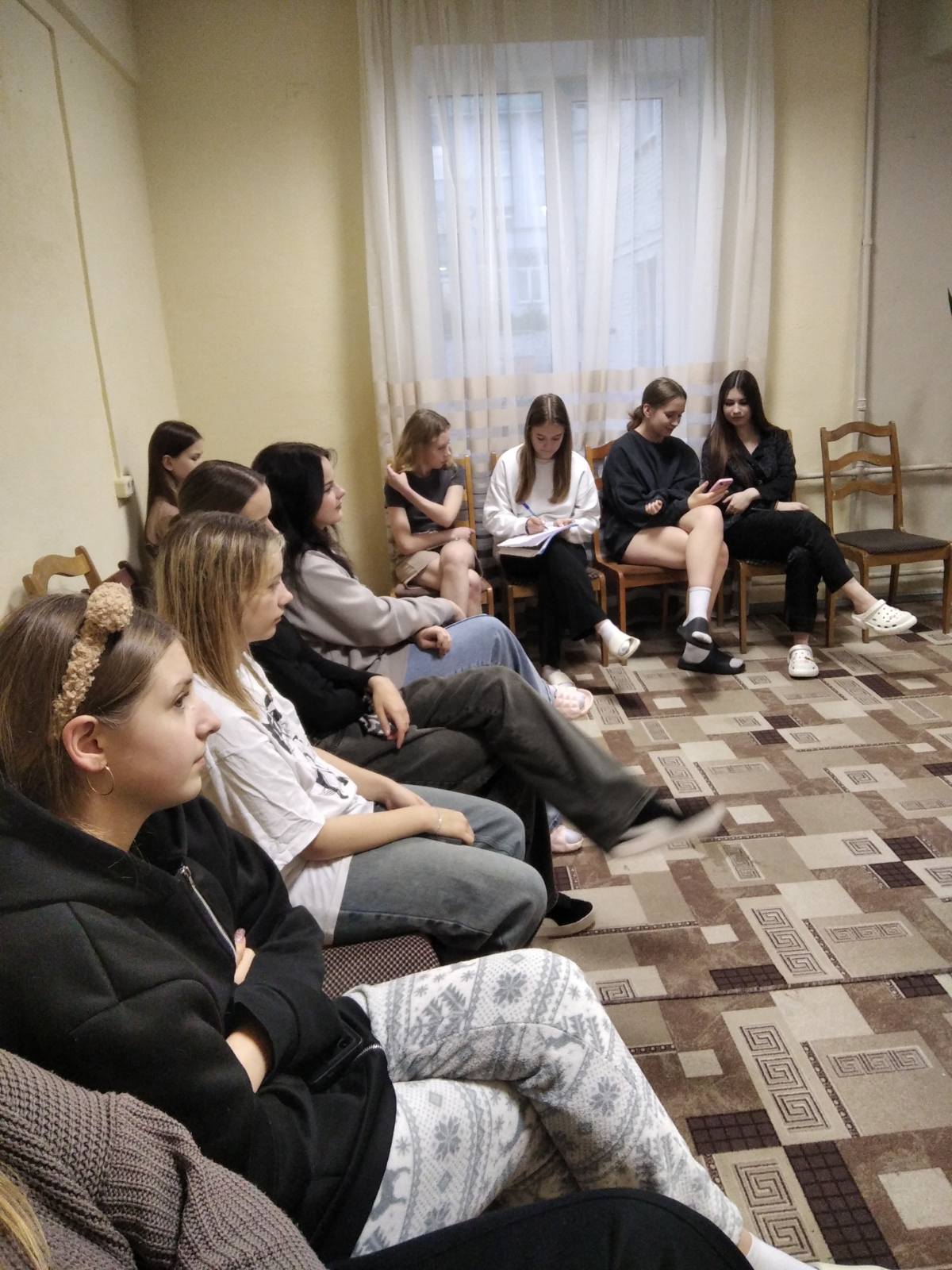 24.10.2024 с группой девочек, проживающих в первом общежитии проведено занятие"Гигиена девочки,  девушки, женщины как один из факторов сохранения репродуктивного здоровья". Мероприятие проведено с участием фельдшера филиала Снежаны Анатольевны и педагога социального Раисы Фёдоровны.