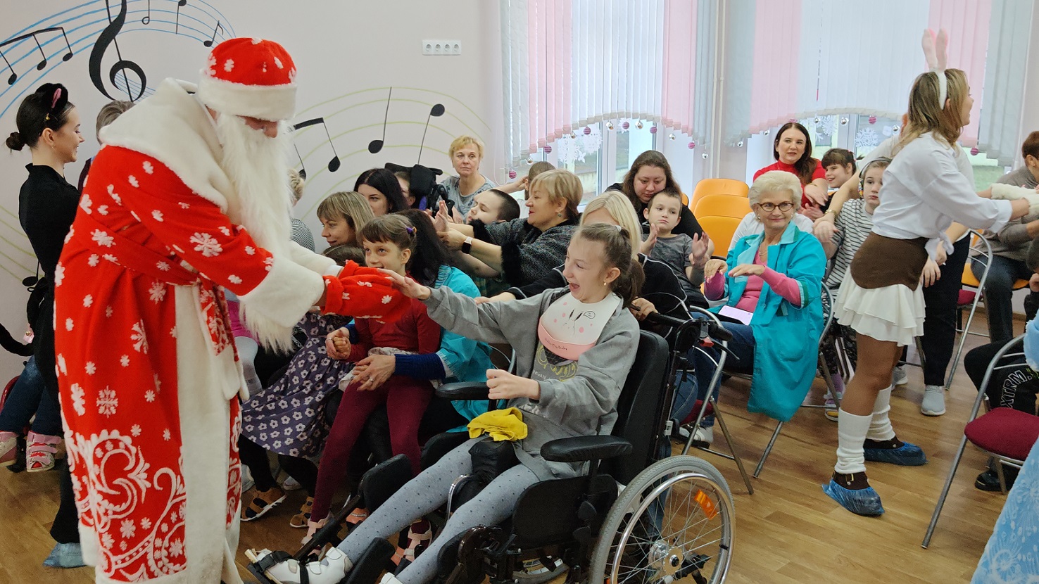 Дед Мороз и Снегурочка, Зайка, Кошка Лера и Скоморох провели представление с интерактивными конкурсами, играми и традиционным новогодним хороводом. Воспитанники центра были искренне рады представлению, общению, играм и сладким призам, собранным коллективом сотрудников и обучающихся Филиала в рамках Новогоднего марафона добрых дел, традиционно проводимого в декабре. В Центр также были переданы канцелярские товары, влажные салфетки, массажные масла, пеленки и проч.