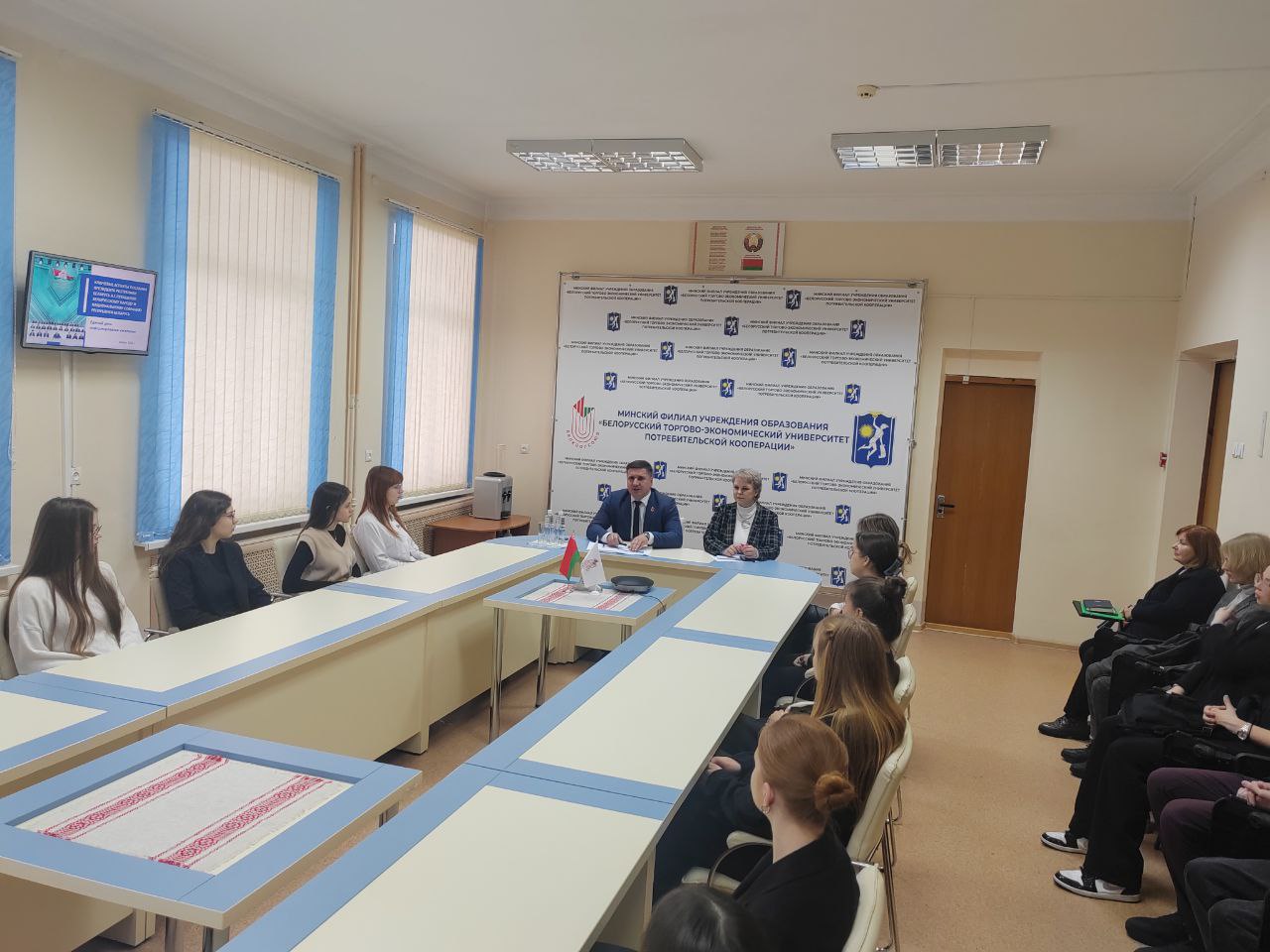 29.01.2026 в Минском филиале БТЭУ ПК прошла встреча с участником Всебелорусского народного собрания, депутатом Палаты представителей Национального собрания Республики Беларусь VI созыва Валерием Викторовичем Курсевичем. В ходе мероприятия были обсуждены ключевые аспекты Послания Президента Республики Беларусь, затрагивающие вопросы социально-экономического развития страны, поддержки молодежи и совершенствования системы профессионального образования.