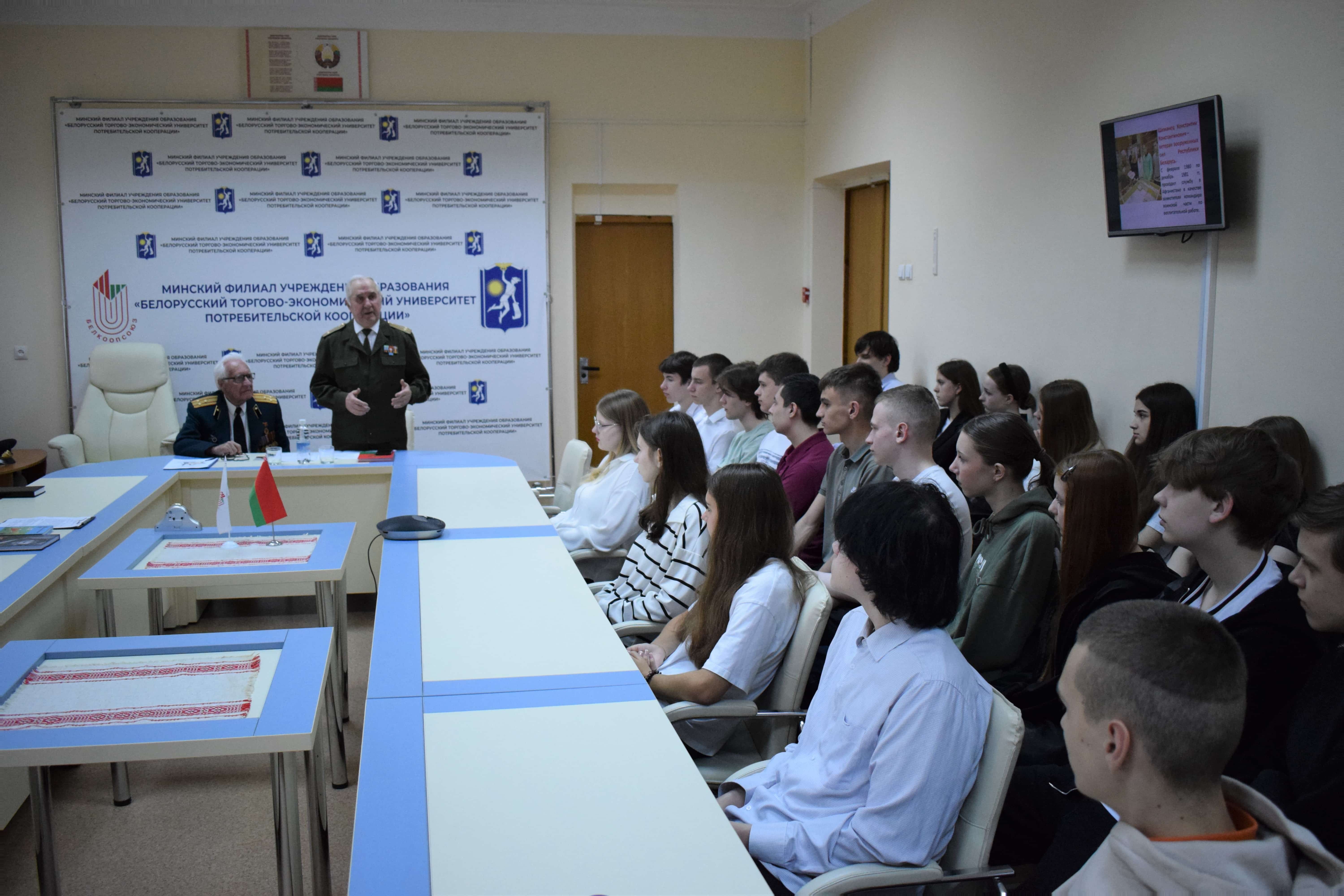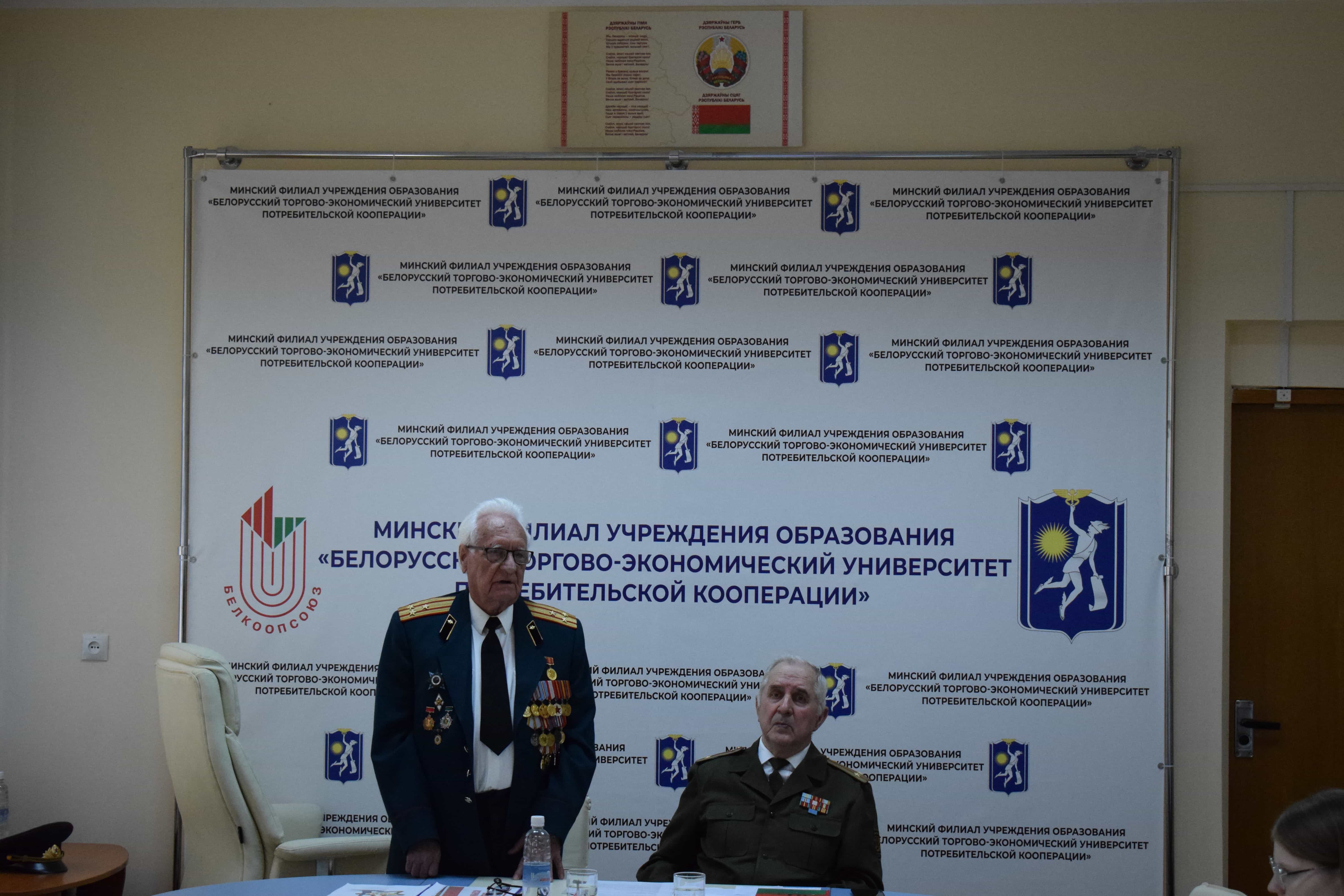 Накануне 80- летия Победы в филиале состоялась встреча учащихся с ветераном Вооруженных Сил СССР Лазаревым Юрием Васильевичем и ветераном Вооруженных Сил Республики Беларусь Шиманцом Константином Константиновичем.