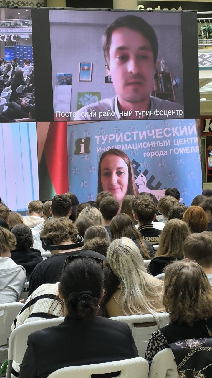 Учащиеся Минского филиала УО БТЭУ ПК вместе с руководителем военно-патриотического воспитания В.Н.Зайцевым и педагогом организатором Т.Ю.Чернявской приняли участие в информационно- просветительской акции "Открытое знание" на тему "Туризм по-белорусски. Запусти своё путешествие", которая прошла в торговом центре "Столица".