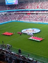 Сегодня учащиеся и сотрудники Минского филиала УО " Белорусский торгово-экономический университет потребительской кооперации" приняли участие в торжественном открытии Национального Стадиона.