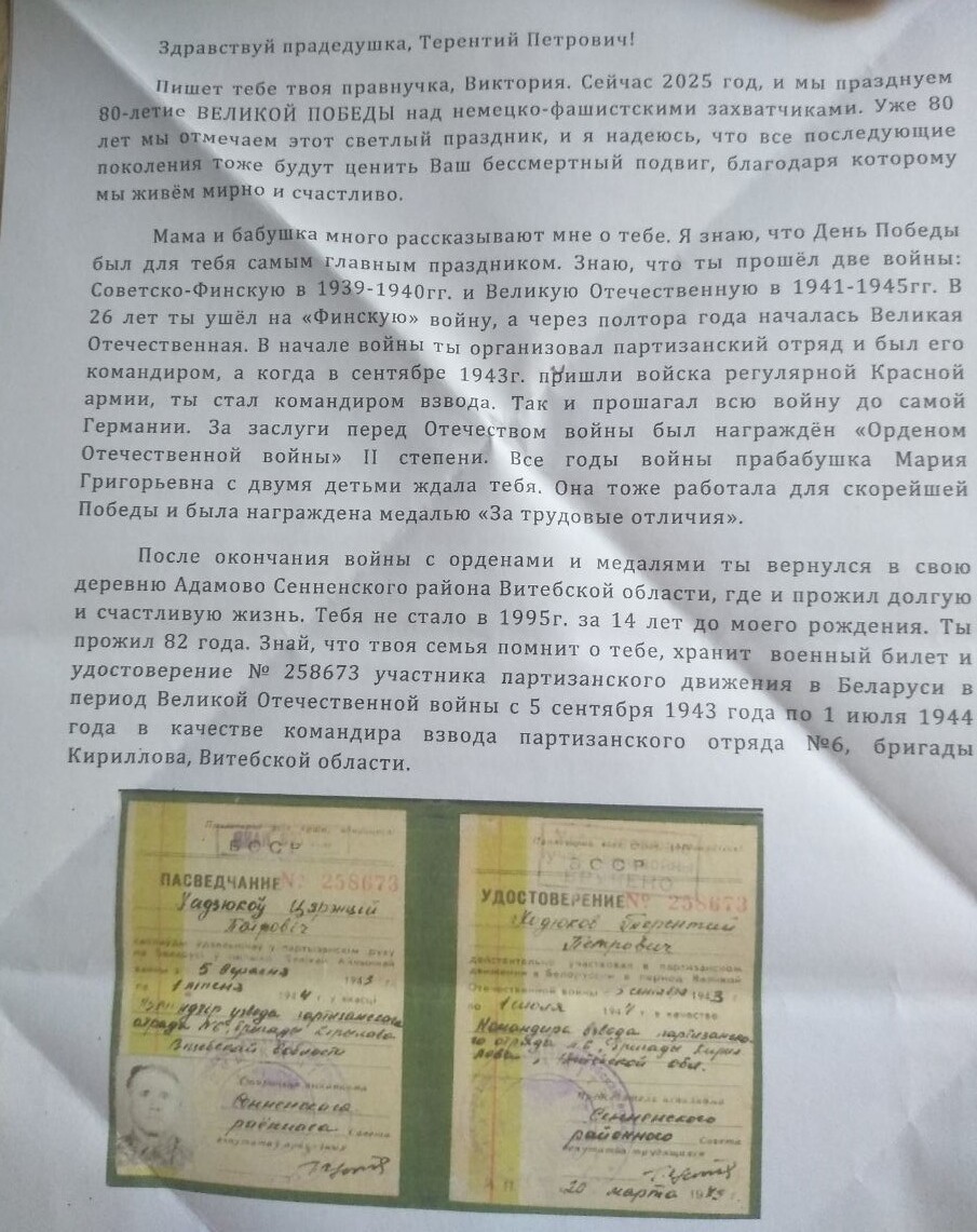 В целях сохранения исторической памяти о героических подвигах белорусского народа и жертвах нацизма в период Великой Отечественной войны 1941-1945 годов, формирования чувства уважения к истории своей семьи и страны Министерство образования организовало проведение с 25 апреля по 16 мая 2025 года республиканского проекта «Письмо прадеду».