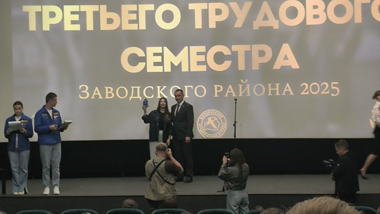 Бойцы студенческих отрядов Минского филиал УО БТЭУ ПК приняли участие в Открытии третьего трудового семестра и получили трудовую путёвку из рук главы администрации Заводского района Шибеко Владимира Дмитриевича.