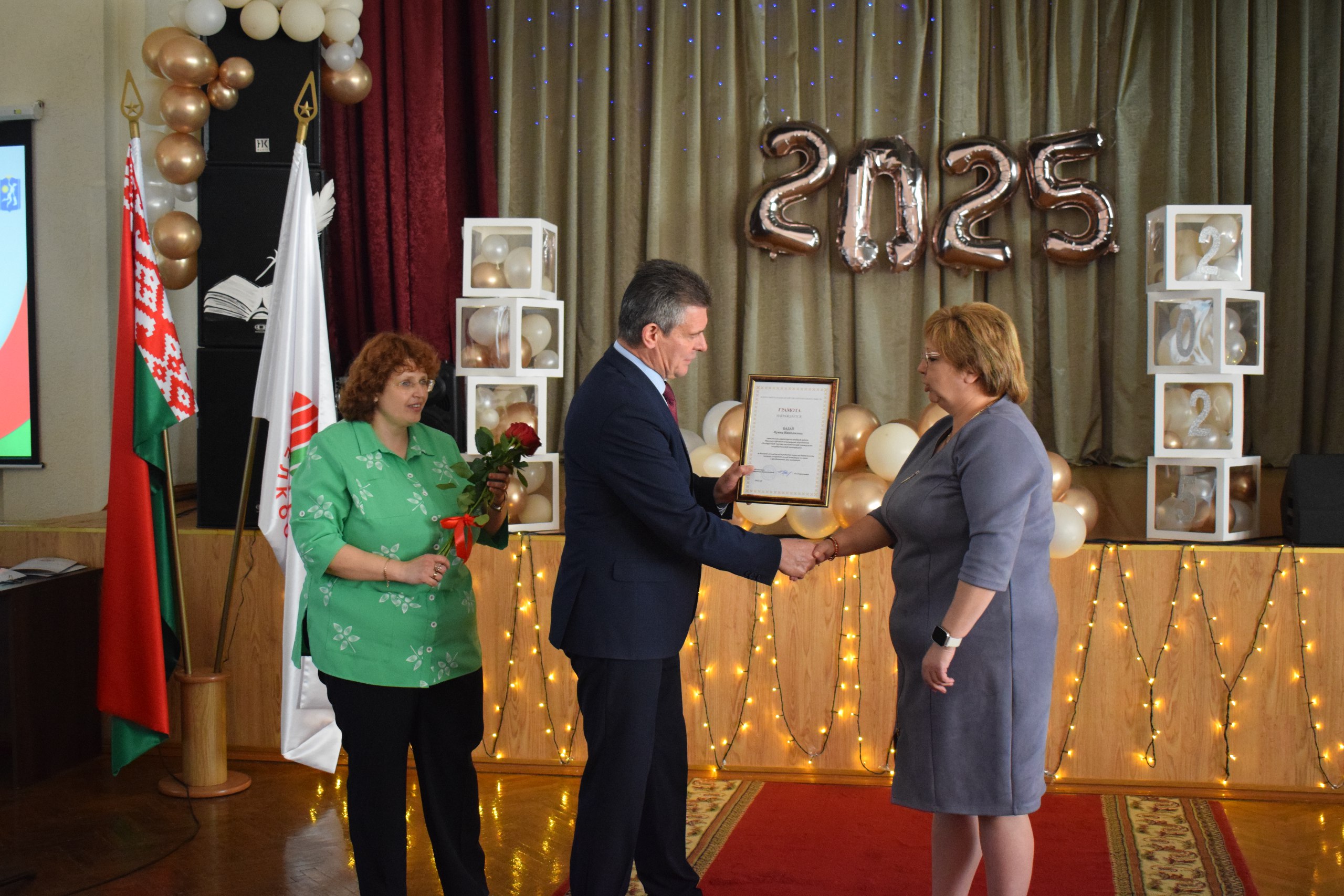 02.07 в Минском филиале БТЭУПК прошло торжественное собрание трудового коллектива. Администрация филиала в лице директора Левшунова Олега Федоровича и председатель профсоюзного комитета Кузнецова Елена Анатольевна поздравили коллектив с наступающим Днем Независимости и Днем потребительской кооперации. Сотрудники были награждены знаком 30 лет в потребительской кооперации,грамотами и благодарностями Белкоопсоюза,почетными грамотами Минского филиала. Также за активную работу в рамках избирательной кампании сотрудникам филиала были вручены благодарственные письма Центральной избирательной комиссии