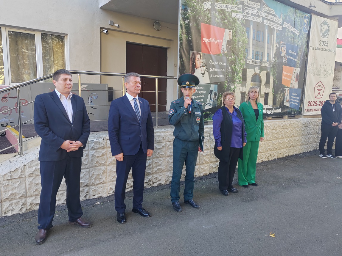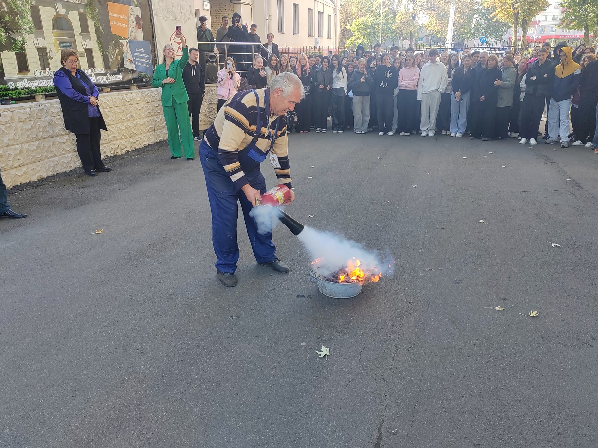 В этот день с участием РОЧС Заводского района г.Минска проведены тренировочные занятия, включая эвакуацию людей из здания учебного корпуса, с обучающимися проведена беседа о соблюдении требований пожарной безопасности. В холле 1 этажа учебного корпуса демонстрировался видеоролик о безопасном поведении и эвакуации людей из здания во время пожара.