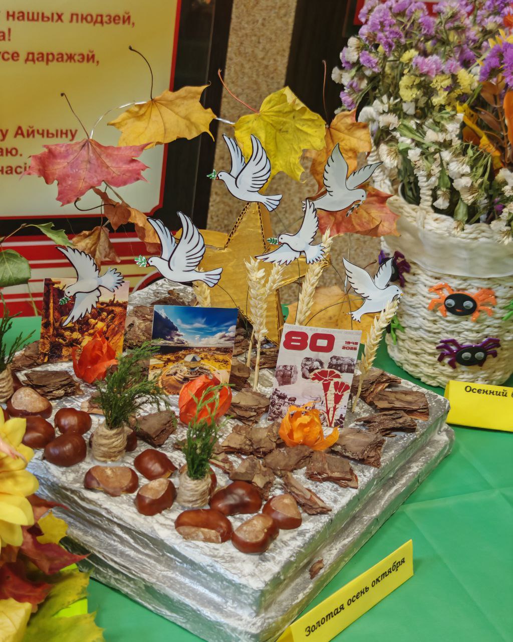 В Минском филиале БТЭУ ПК подведены итоги традиционной выставки-конкурса поделок из природных материалов «Осенняя фантазия-2025», посвящённой 80-летию Великой Победы. Были представлены самые разные работы наших талантливых учащихся: символический Вечный огонь и салют из ярких кленовых листьев, летящие голуби мира, уютный домик, собранный из причудливых веточек, нарядные букеты из шишек, засушенных цветов и листьев и др. Каждая поделка — это не только проявление фантазии и мастерства, но и глубокое СПАСИБО тем, кто подарил нам мирное небо.