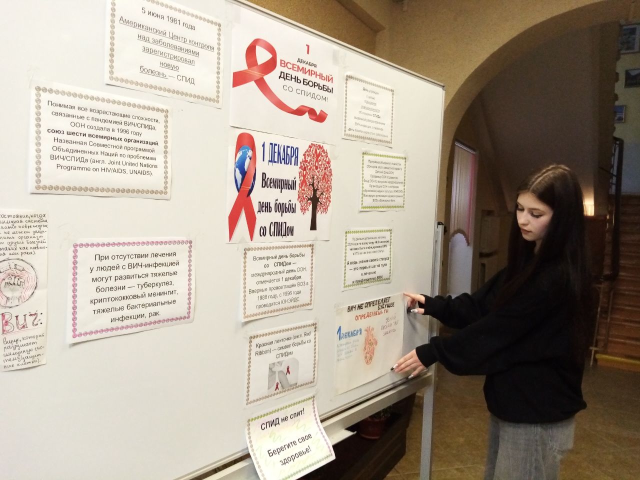 1 декабря 2025 года в Минском филиале стартовала акция приуроченная ко Всемирному Дню борьбы со СПИДом. Для обучающихся демонстрировалась презентация, оформлен информационный стенд, на котором рядом с информацией разместились плакаты ребят. Красная ленточка нашла свое место на груди учащихся филиала, как международный символ борьбы со СПИДом, в знак сострадания, поддержки и надежды на будущее без СПИДа.