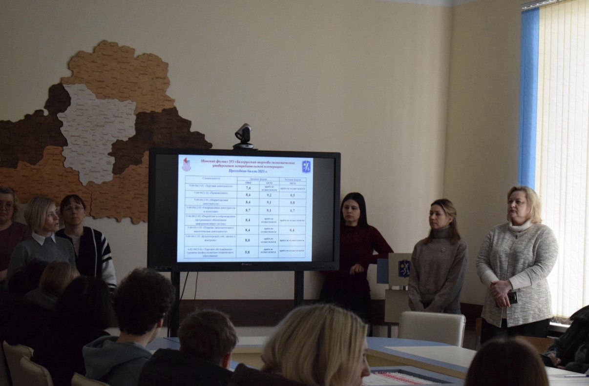 31 января 2026 года в Минском филиале УО «Белорусский торгово-экономический университет потребительской кооперации» прошел первый в 2026 году День открытых дверей, на котором присутствовали будущие абитуриенты и их родители из города Минска и Минской области, а так же начальник отдела кадров Минского райпо Фадеева Татьяна Юрьевна. Присутствующим была представлена информация о достижениях филиала, специальностях, правилах приема, возможностях дальнейшего продолжения обучения в учреждениях высшего образования. Преподавателями цикловых комиссий были представлены презентации специальностей, мастер-классы, викторины.Администрация филиала выражает благодарность сотрудникам, принявшим активное участие в подготовке и проведении данного мероприятия.