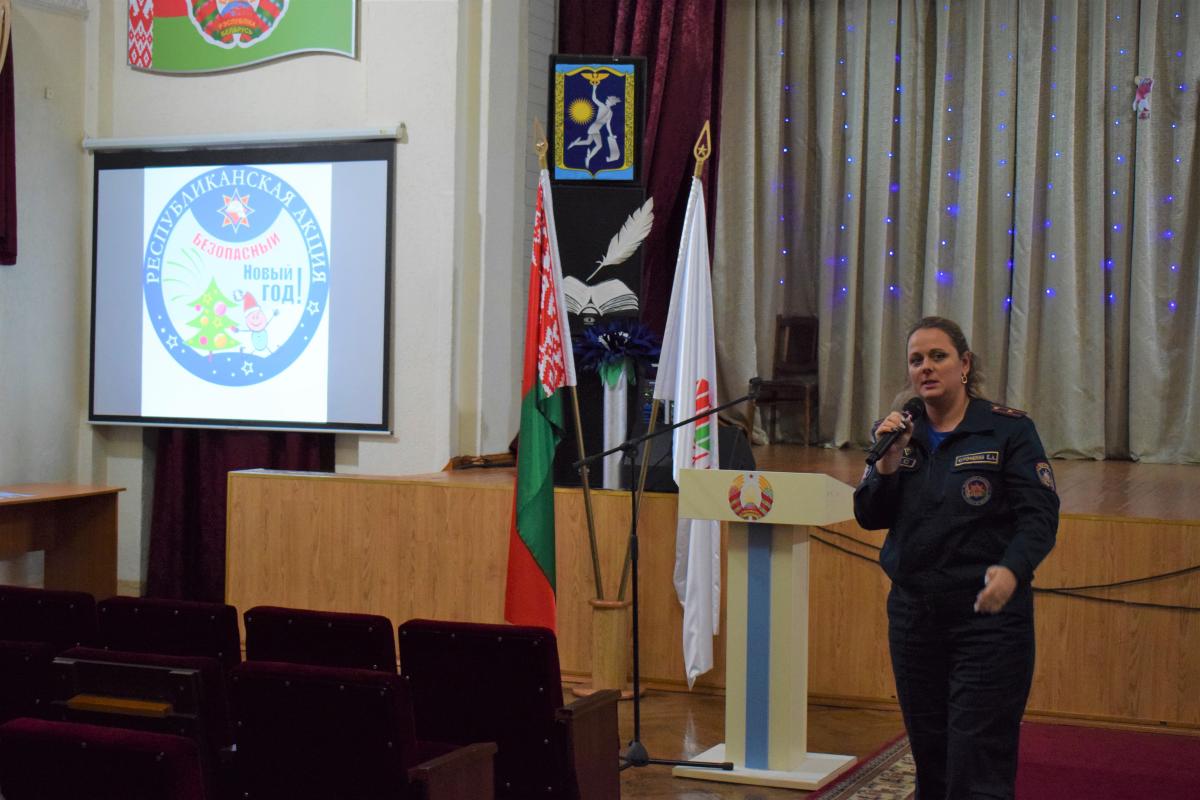 В рамках проводимой республиканской акции «Безопасный Новый год!» инспектор Заводского районного отдела по чрезвычайным ситуациям Курочкина А.А. 18 декабря 2025 года встретилась с обучающимися первого и второго курса Минского филиала УО «Белорусский торгово-экономический университет потребительской кооперации».