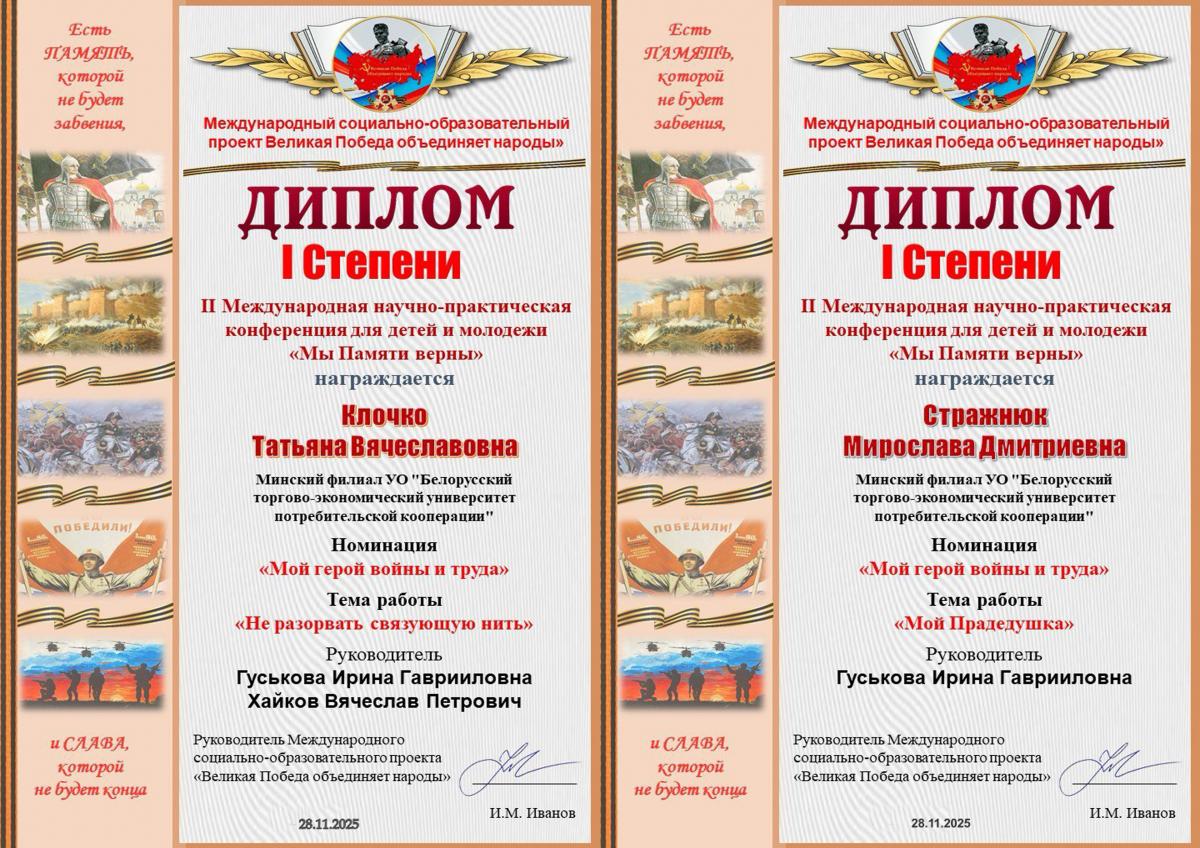 26-27 ноября 2025 году в рамках Международного социально-образовательного проекта «Великая Победа объединяет народы» состоялась II Международная научно-практическая конференция для детей и молодежи «Мы Памяти верны».
