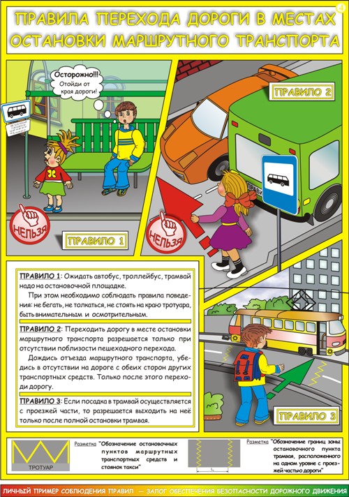 - Выйдя из автобуса, подожди, пока он отъедет. Найди пешеходный переход, а если его поблизости нет, осмотрись по сторонам и при отсутствии машин переходи дорогу в том месте, где она хорошо видна в обе стороны.