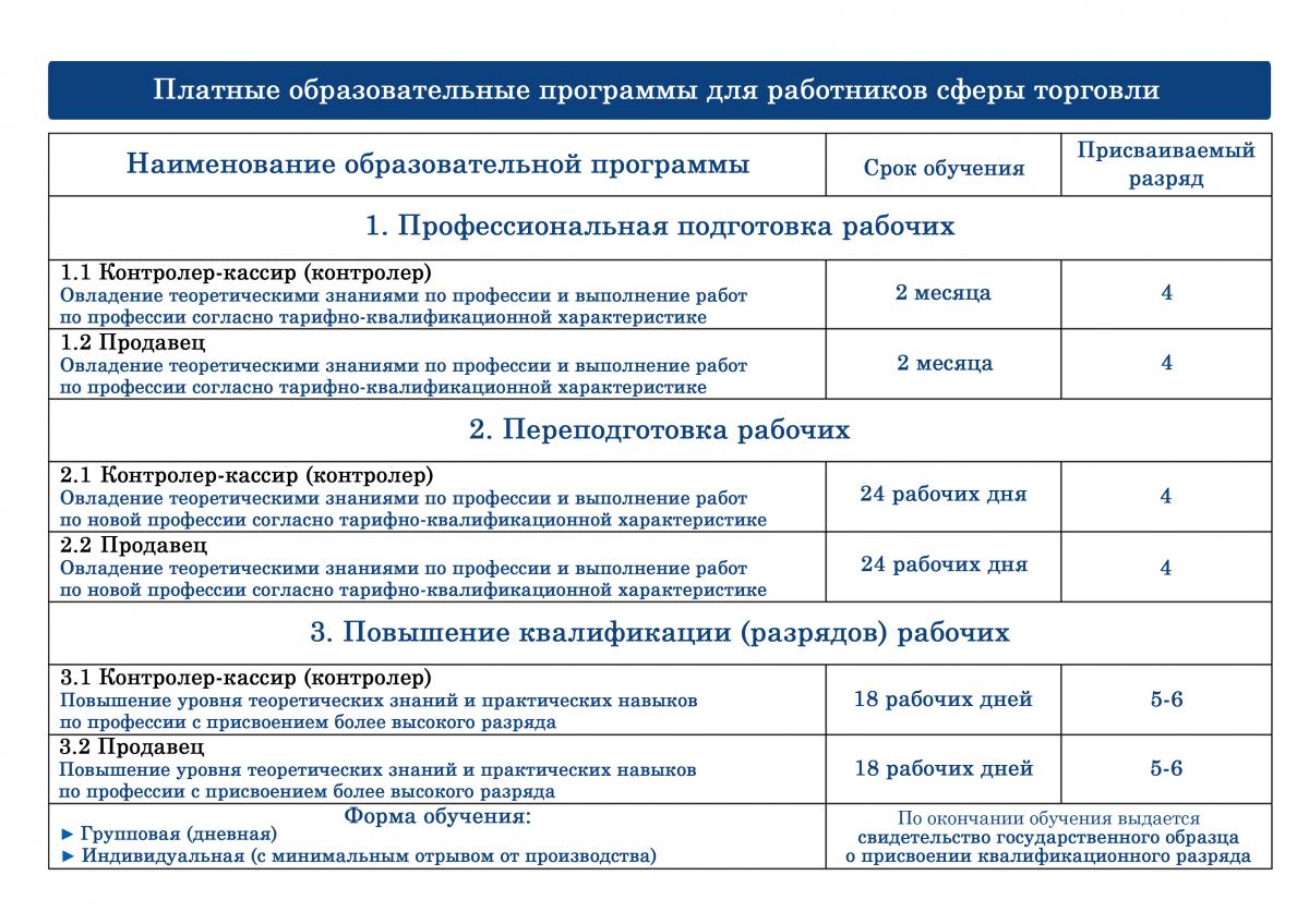 Минский филиал предлагает Вам и Вашим специалистам профессиональное обучение по профессии «Продавец».