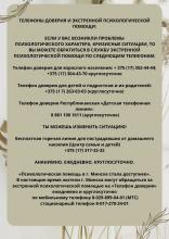- ТЕЛЕФОНЫ И АДРЕСА ЭКСТРЕННОЙ ПСИХОЛОГИЧЕСКОЙ ПОМОЩИ