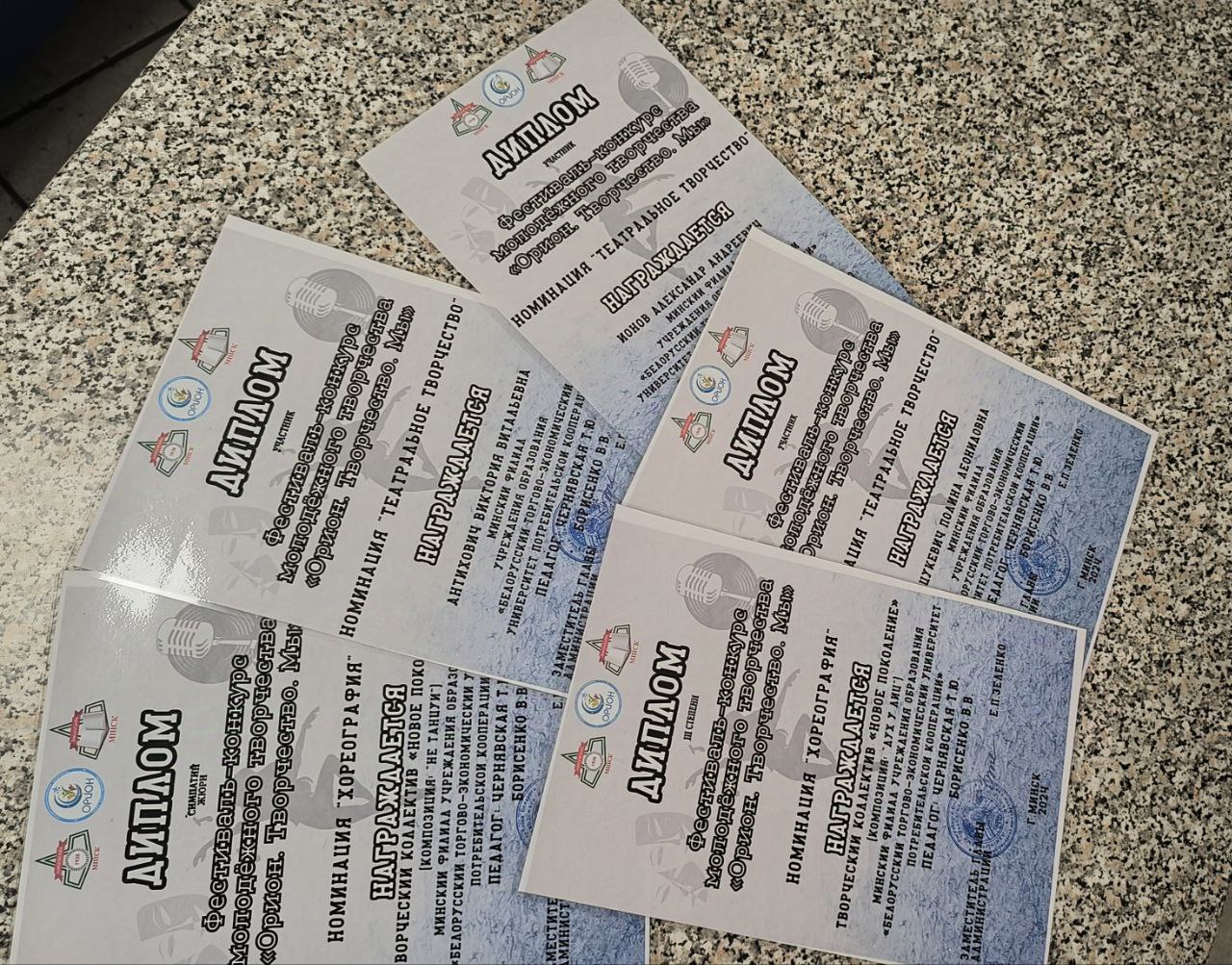 Сегодня учащиеся Минского филиала БТЭУ ПК соревновались в номинациях "Театральное творчество" и "Хореография" Наши результаты: Арцукевич Полина - Диплом участника Антихович Виктория -Диплом участника Ионов Александр - Диплом участника и слова благодарности от жюри. "НОВОЕ Поколение"- танец "Не танцуй" -Диплом симпатий жюри. "НОВОЕ Поколение"- танец "Дух уЛиц"-III место! Есть к чему стремиться! Молодцы! ПОЗДРАВЛЯЕМ!