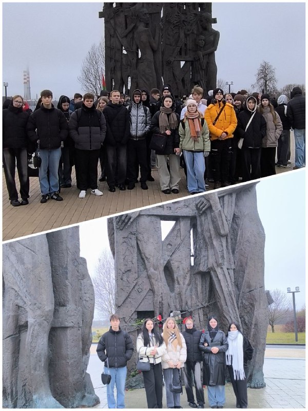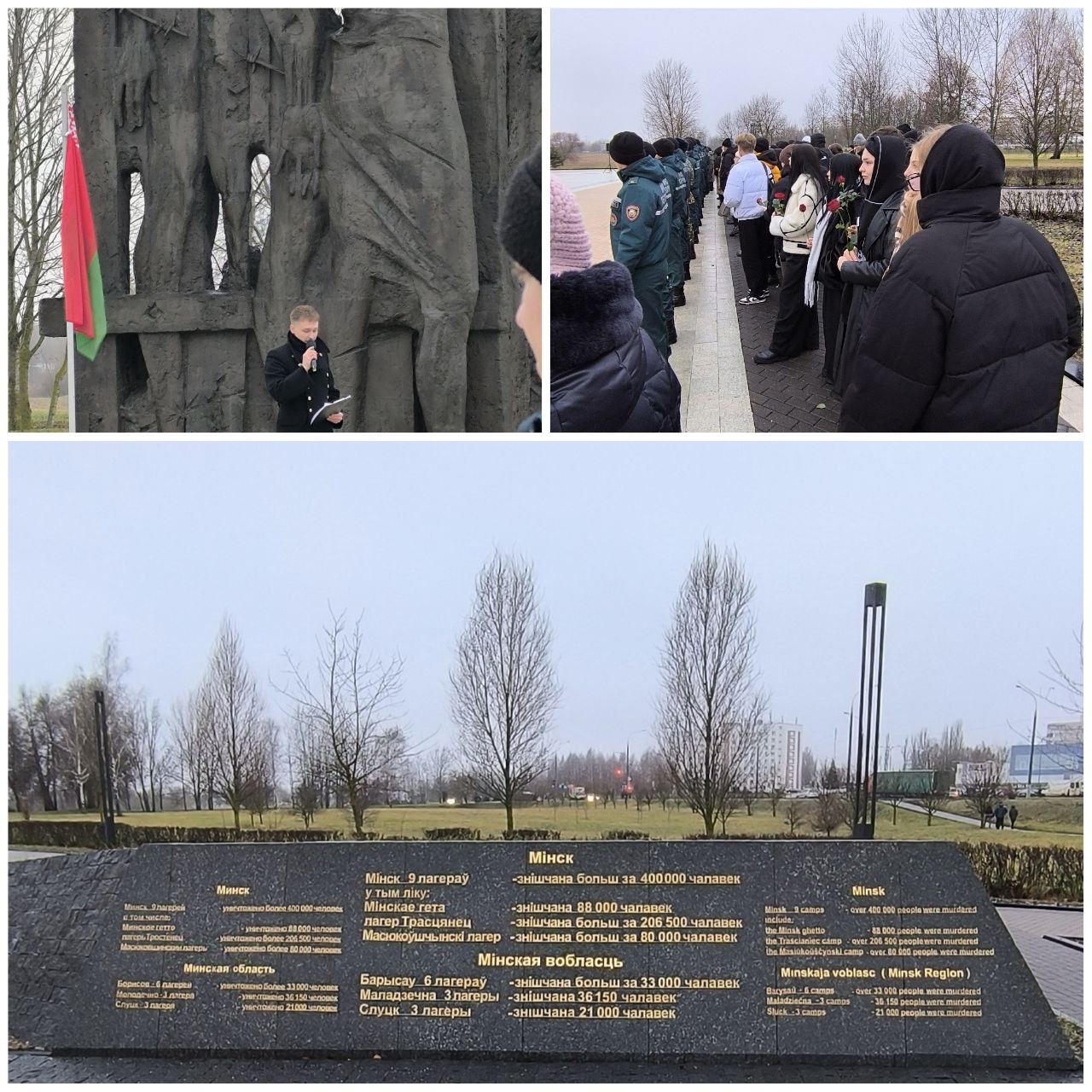 Сегодня по всей республике прошли минуты молчания и акции, посвященные Международному дню памяти жертв преступления геноцида, чествования их достоинства и предупреждения этого преступления. Учащиеся Минского филиала также приняли участие в акции и возложили цветы у Мемориального комплекса "Тростенец" Врата Памяти и памятника «Мемориал концлагеря Шталаг № 352»