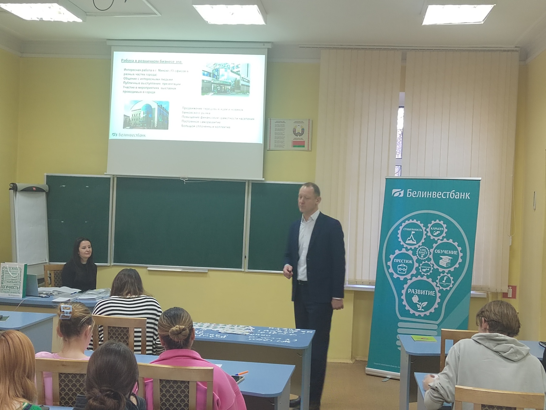 ОАО Белинвестбанк — ведущий игрок на финансовом рынке Беларуси, известный своими инновационными решениями и высоким уровнем сервиса, развитой корпоративной культурой. Представители банка рассказали учащимся о  интересных проектах, возможностях профессионального развития, программах лояльности для молодёжи.