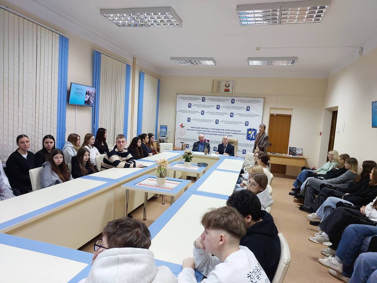 19-го декабря в Минском филиале прошел урок памяти «Помнить и не забывать», посвященный геноциду белорусского народа в годы Великой Отечественной войны. Участие приняли ветераны вооруженных сил Республики Беларусь, члены Белорусского союза офицеров Илья Макарович Корабликов и Константин Константинович Шиманец.