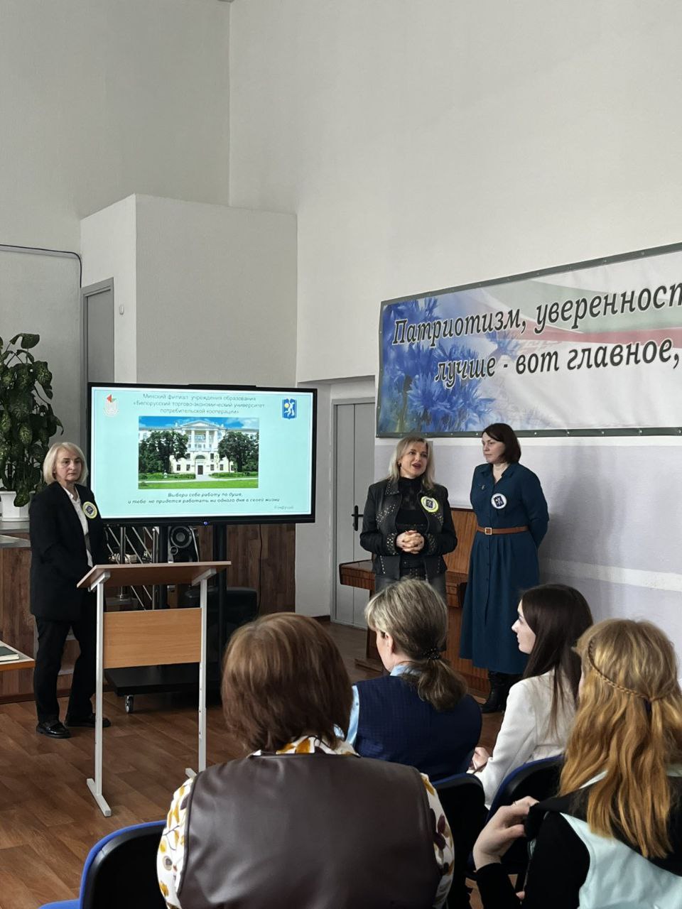Представители филиала Улезло Е. С., Мужиченко И. Н., Красовская О. А. представили подробную информацию об образовательных программах, реализуемых в Минском филиале БТЭУ ПК, особенностях обучения и перспективах трудоустройства в системе потребительской кооперации. Особое внимание было уделено преимуществам целевого обучения, включая гарантированное трудоустройство после окончания учебы и возможность получения финансовой поддержки от организации-заказчика.