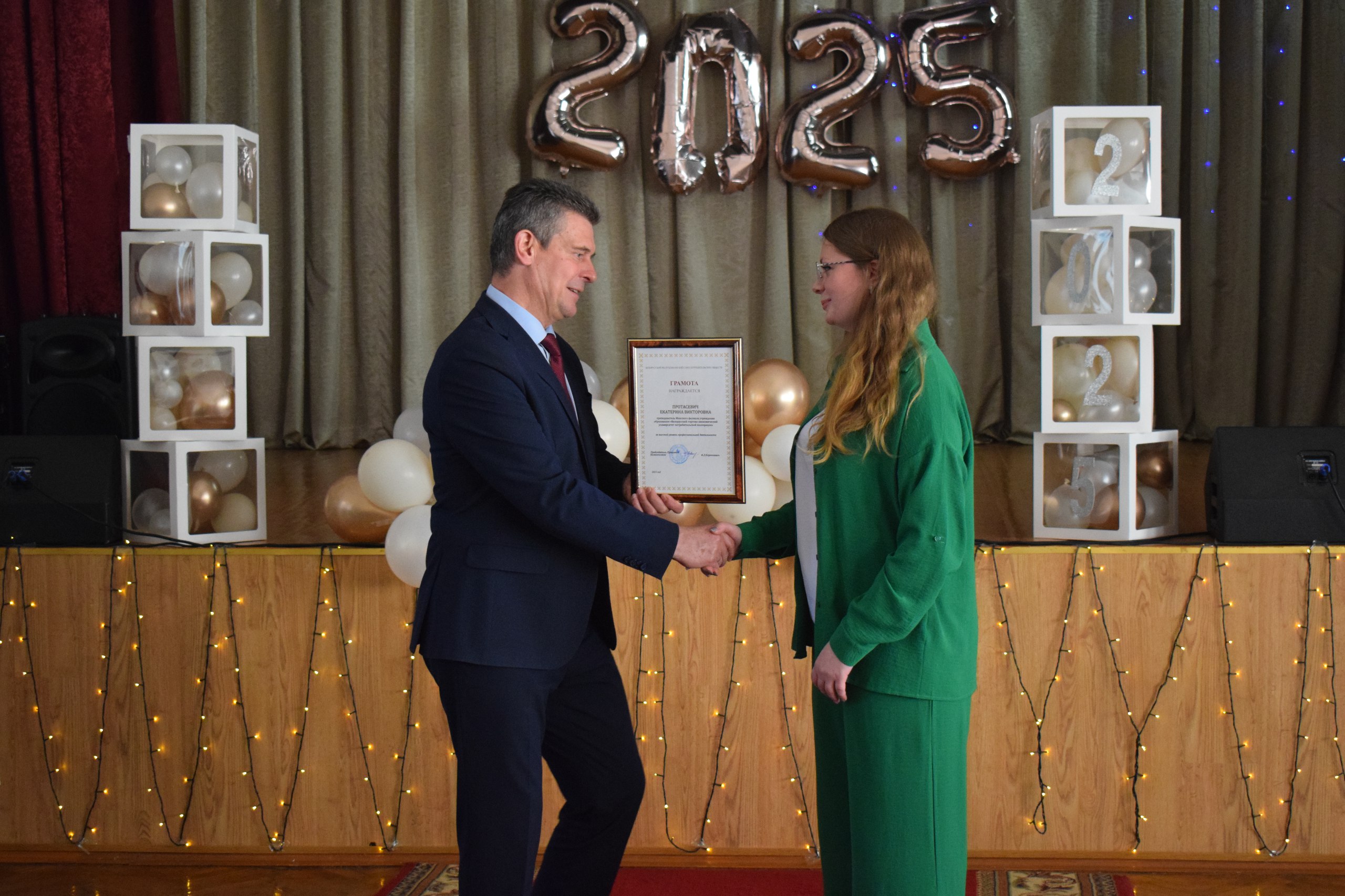 02.07 в Минском филиале БТЭУПК прошло торжественное собрание трудового коллектива. Администрация филиала в лице директора Левшунова Олега Федоровича и председатель профсоюзного комитета Кузнецова Елена Анатольевна поздравили коллектив с наступающим Днем Независимости и Днем потребительской кооперации. Сотрудники были награждены знаком 30 лет в потребительской кооперации,грамотами и благодарностями Белкоопсоюза,почетными грамотами Минского филиала. Также за активную работу в рамках избирательной кампании сотрудникам филиала были вручены благодарственные письма Центральной избирательной комиссии