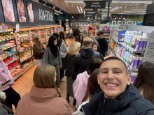 Будущие маркетологи изучают искусство выкладки товаров на предприятии.