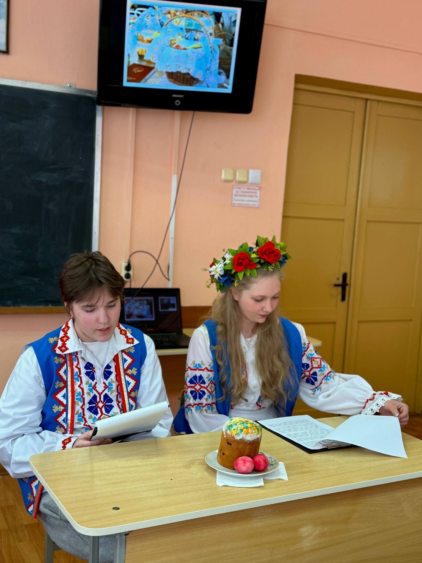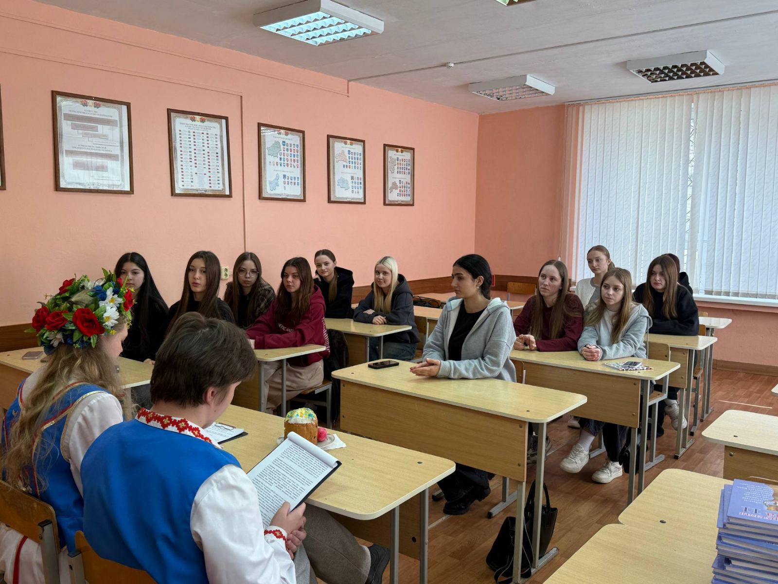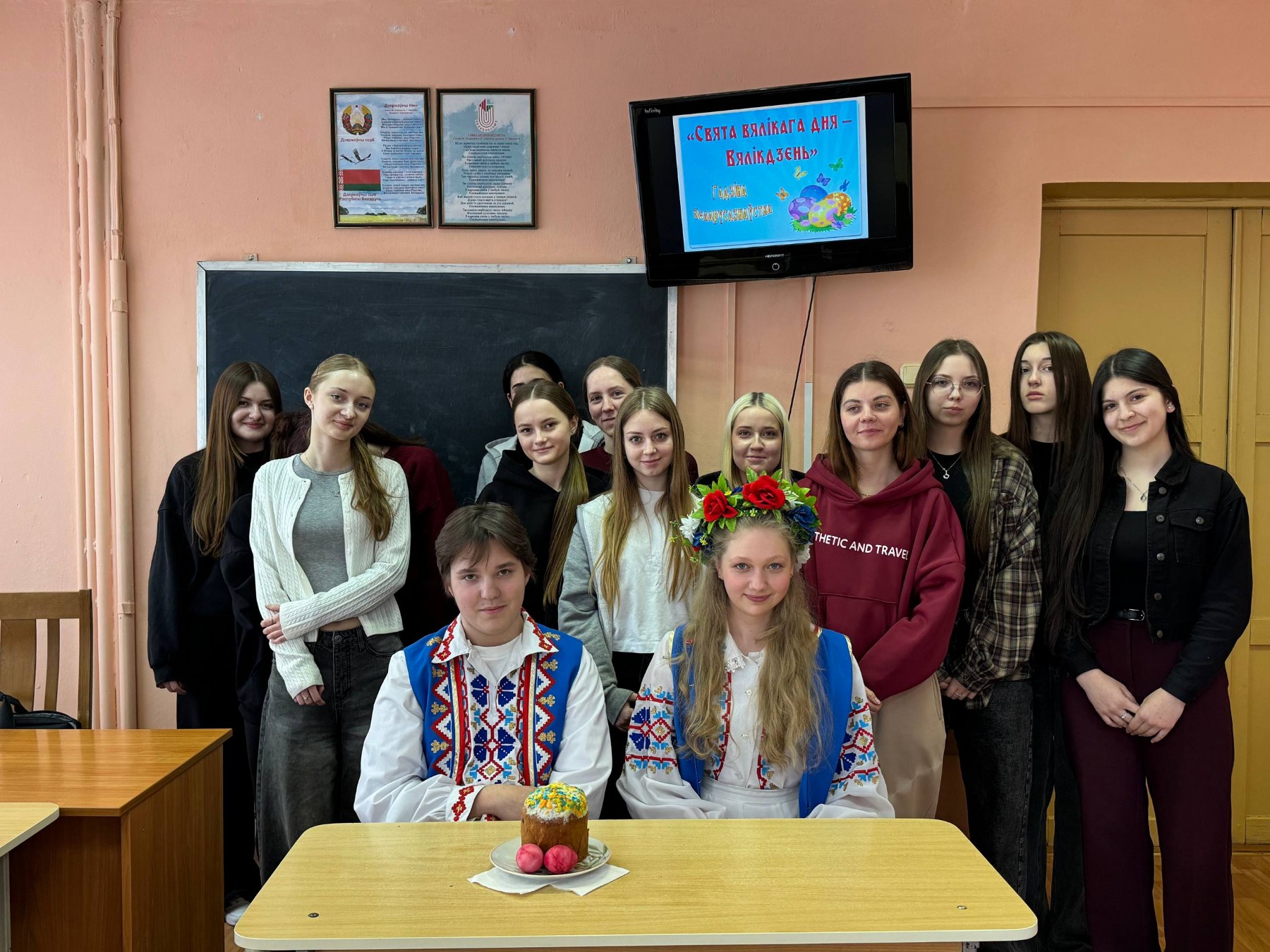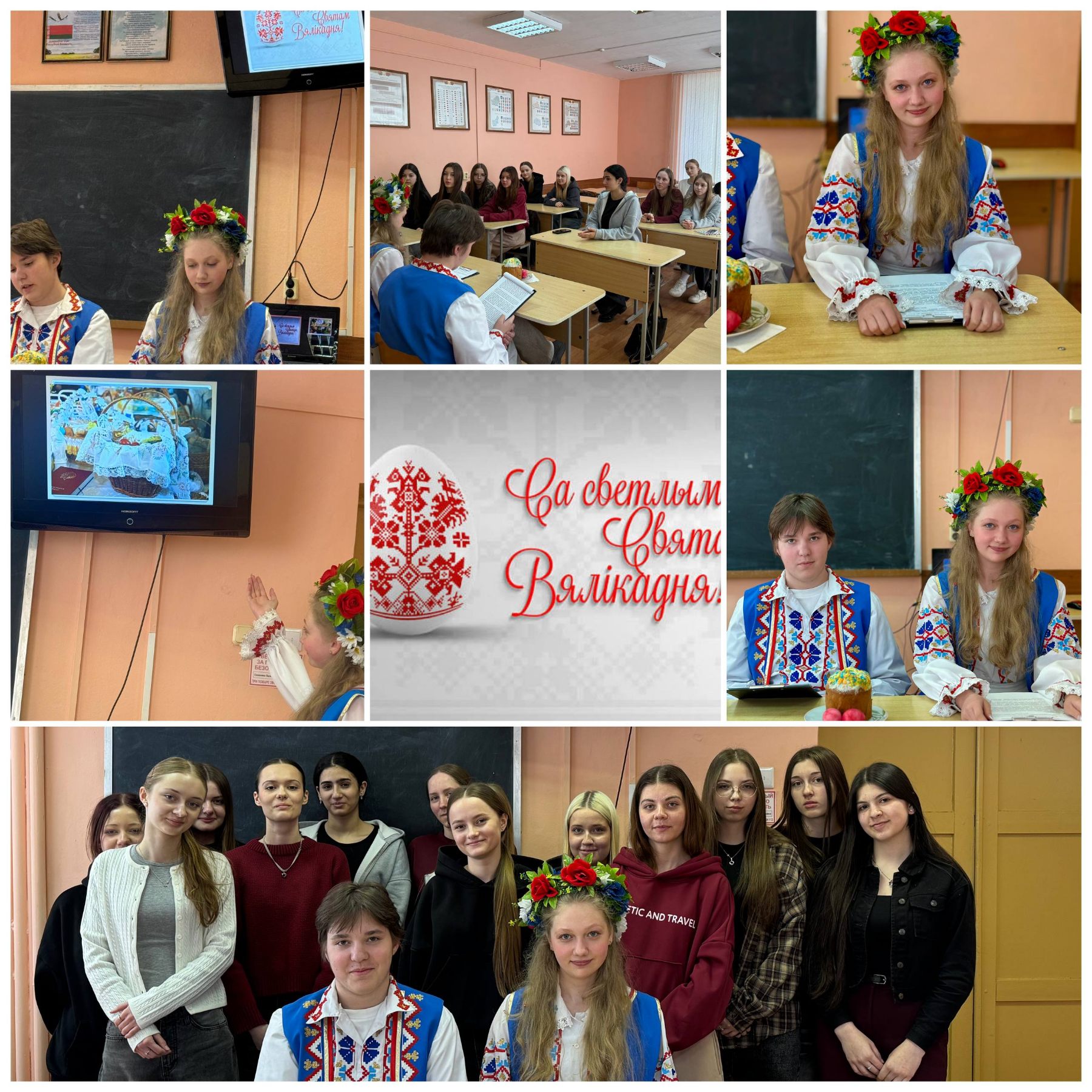 Гадзiна беларусазнаўства "Свята Вялiкага дня - Вялiкдзень" сабрала навучэнцаў групы 21 ЛБ, каб пашырыць iх веды пра традыцыi святкавання, прыгадаць валачобныя песнi, пазнаёміцца са святкавальнымi стравамi. Дарэчы было ўспомніць i "Новую зямлю" Якуба Коласа - энцыклапедыю жыцця беларускага народа, раздзел "Вялiкдзень".