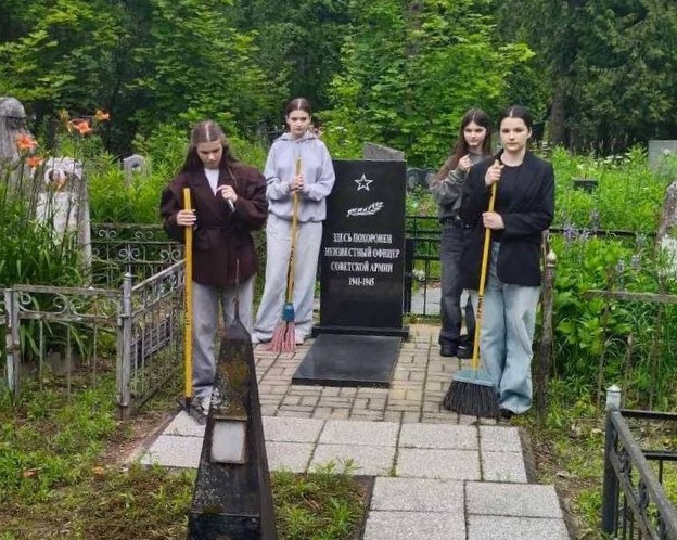 В соответствии с письмом администрации Заводского района г.Минска,а также с целью формирования гражданской ответственности патриотического сознания и чувства верности своей Родины руководитель Военно-патриотического воспитания Зайцев Владимир Николаевич с группой 11эб провели уборку захоронения неизвестного офицера Советской Армии (захоронение 1161) кладбище "Чижовское" г.Минск.