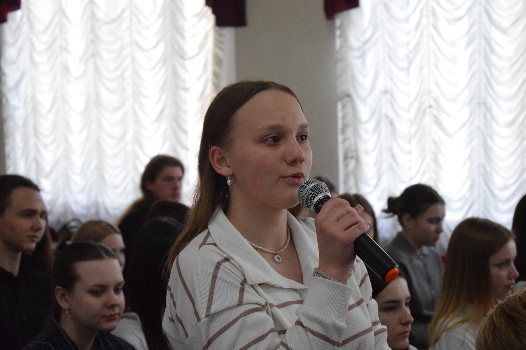 Мероприятие прошло в формате открытого диалога. Валерий Николаевич подчеркнул, что истинный патриотизм начинается с глубокого знания истории и уважения к современным успехам страны. Привел примеры последних достижений Беларуси в промышленности, сельском хозяйстве и социальной сфере, системе потребительской кооперации. Отдельный блок беседы был посвящен тому, как сегодняшняя молодежь уже сейчас, через учебу, общественную деятельность и труд, вносят вклад в будущее развитие Беларуси. «Гордиться страной — значит делать её лучше своими делами», — отметил В.Н. Мариничев.